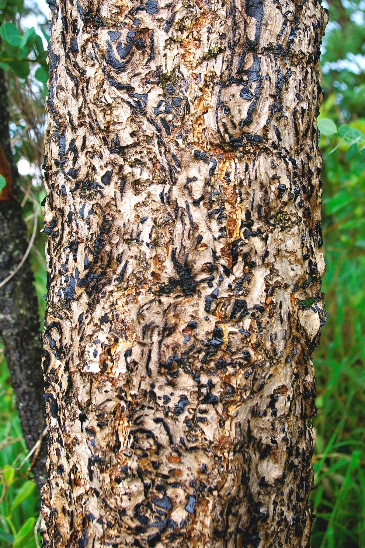 Superfíciie do ritidoma, chamuscada por fogo. Pires do Rio (GO), 06-10-2013